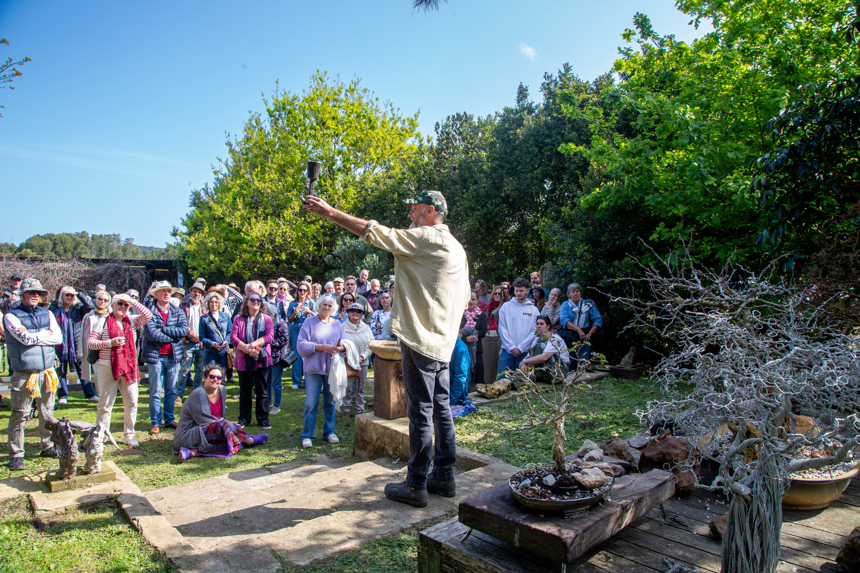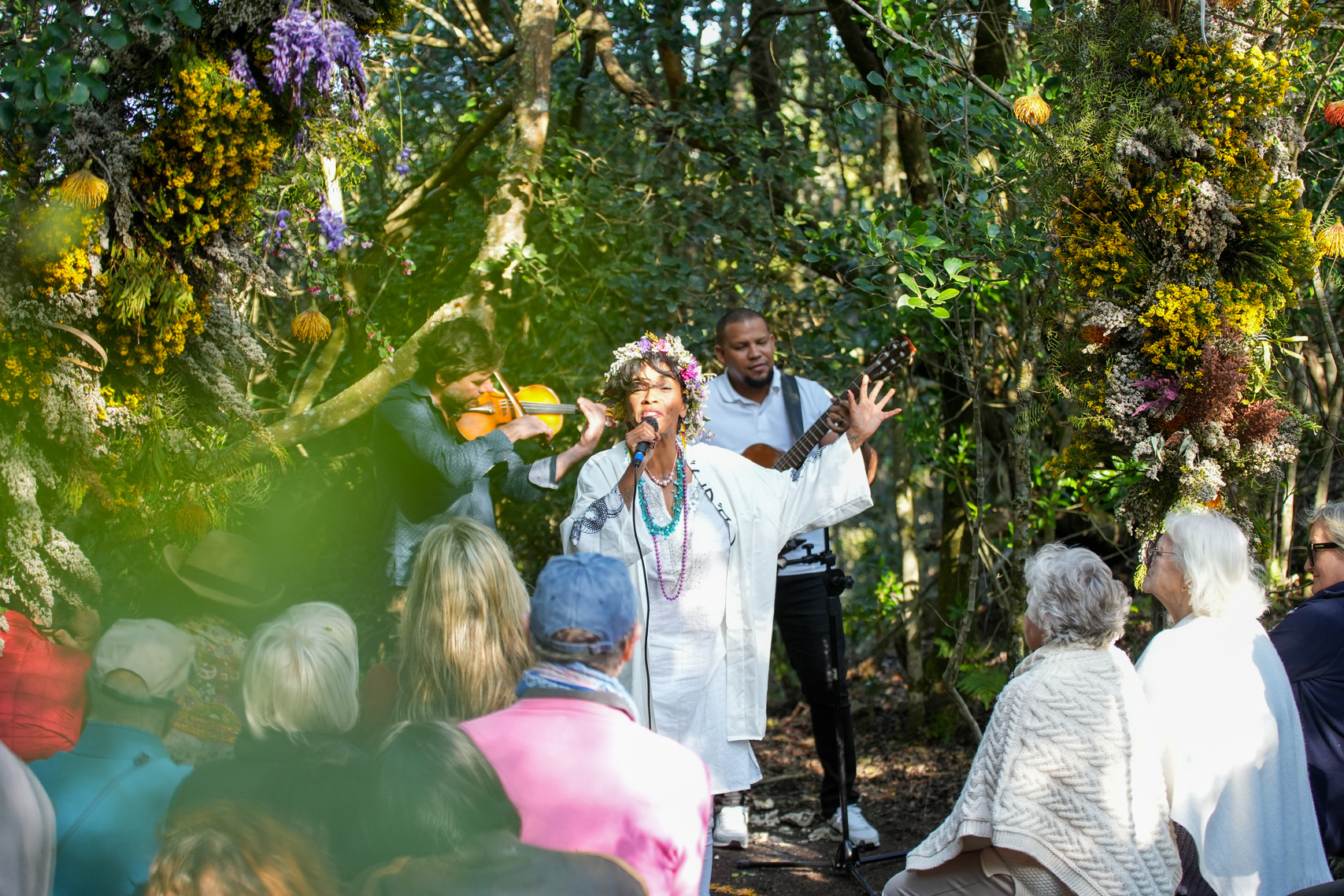 - Concert in the Forest, Land Art and Traditional Art Exhibitions and Bronze Pouring at Bronze Fields: Celebrated sculptor – and creator of the famous “Dolphin Circle” sculpture on Plett’s Main Street Plett – Robert Leggat opened his farm and foundry in Harkerville to performers and land artists which culminated in a Land Art trail created using natural materials with special attention to pin-cushion proteas, so apt during South Africa’s Heritage Month. A dazzling bronze pouring demonstration by Leggat followed by the Concert in the Forest with Germaine Leonard on guitar, Wynand Davel on violin and Auriol Hays singing under a floral archway was a perfect example of the Plett ARTS Festival’s commitment to appreciating art and nature in unique ways.