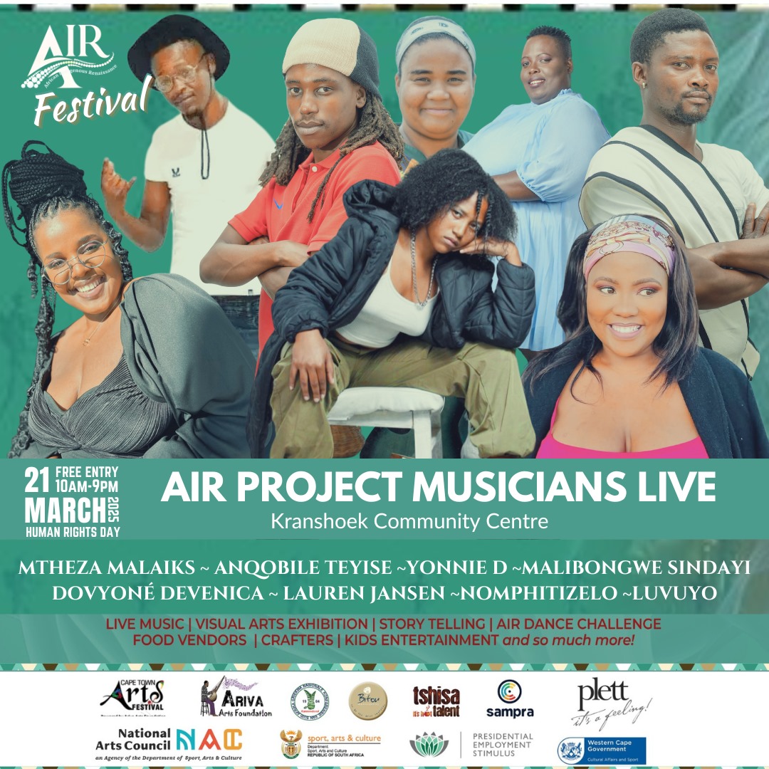 The African Indigenous Renaissance (AIR) Project, presented by Cape Town Arts Festival in partnership with Ariva Arts Foundation, is dedicated to reviving, preserving, and celebrating indigenous African music. This initiative nurtures emerging musicians by training them in traditional instrument-making, performance, and industry skills, guided by legendary mentors Dizu Plaatjies and Geoffrey Tracey.